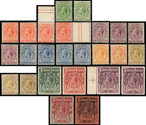 1912-20 set to £1 plus several Part I listed perfs and shades incl 2d line perf 14 and 1s pale bistre-brown, odd minor blemishes but generally fine large part o.g. to o.g. SG 60/69, cat £1700+ (25)
