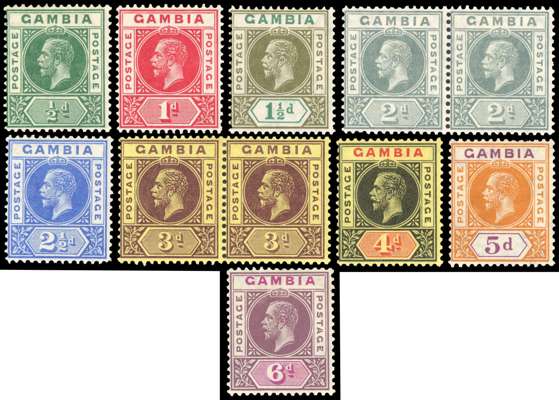 1912-22 short set of 9 to 6d (2d, 3d as horizontal pairs), each showing variety Split ‘A’ (left pane, R8/3), odd minor gum wrinkles or short perfs otherwise fine large part o.g. A scarce group, only 206 of 5d and 207 of 6d existed. SG 86c/94a, cat £1880.