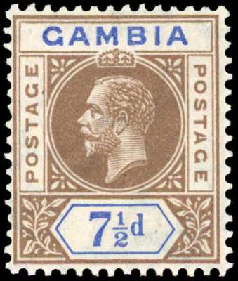 Gambia 1912-22 7½d variety Split A