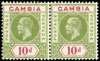 1912-22 10d sage-green and carmine, horizontal pair, the left stamp showing variety Split ‘A’ (left pane, R8/3), unmounted o.g. Rare, only 103 existed. SG 96b, cat £425+.
