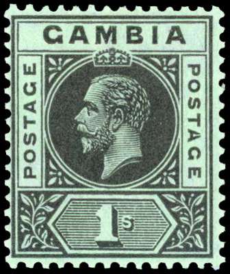 Gambia 1912-22 1s variety Split A unmounted