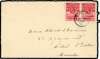 1936 (FE 10) cover (opened on three sides) from Mafeteng to Canada, correctly franked at 2d by 1933 1d scarlet pair, tied by very fine strike of the rare ‘MAFETENGBASUTOLD’ relief cds with four-figure year date (Proud type D13 state 2). SG 2