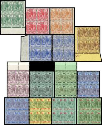 Grenada 1913-22 set to 10s (both) as blocks of 4