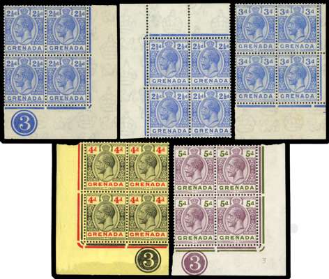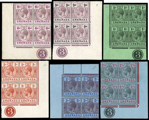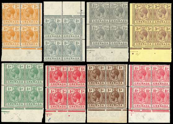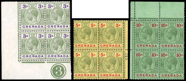 Grenada 1921-32 set to 10s blocks of 4 unmounted