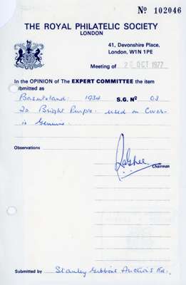 Official. 1934 (1 MAY) OHMS cover to Kenya, franked by lower marginal 2d bright purple opt ‘OFFICIAL’ tied by Maseru cds, with dated red oval ‘RESIDENT COMMISSIONER’S OFFICE / MASERU, BASUTOLAND' h/s at lower left, central fold and sympathetically restored at top for display, still a highly attractive item of great rarity. Ex King Carol of Romania, with RPS cert (1977). SG O3