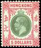 Hong Kong 1912-21 $5 green and red/blue-green with olive back