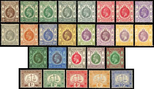 Hong Kong 1921-37 set to $5 plus postage due set