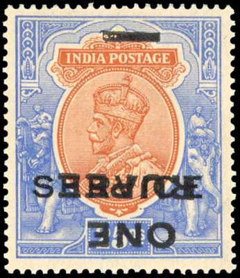 India 1925 official 1r on 25r error surcharge inverted