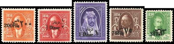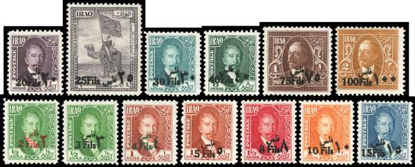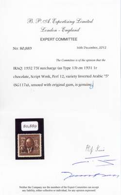 1932 New Currency surcharge set of 16 to 1d on 25r, fresh o.g. Also 3f on ½a error surcharge double (one toned perf) and 75f on 1r variety Inverted Arabic ‘5’, the latter with BPA cert (2012). SG 106/21, cat £1110.