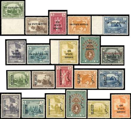 Selection on stock pages comprising 1923-25 set of 13, 1927 1r, 1931 set of 12, 1923 official set to 5r, 1924-25 official set of 12, 1927 official 1r, 1931 official set of 12, and 1932 official set of 17, cond varies with peripheral toning noted but generally fine fresh appearance, part to large part o.g. SG 41/O171 btwn, Cat £1900+.