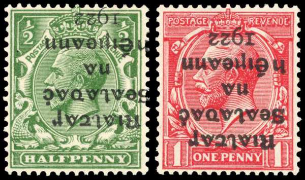 Ireland 1922 ½d and 1d with inverted overprint