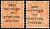 1922 2d orange, type 2 opt by Thom, two examples, respectively die I and die II, both error Opt inverted, large part o.g. SG 12a, 13a, cat £725