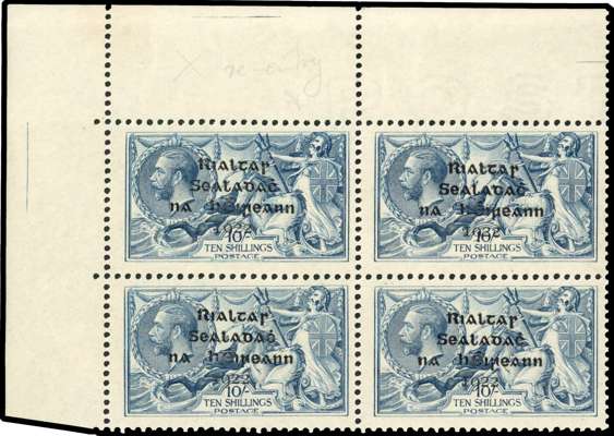 Ireland 1922 Dollard 10s dull grey-blue block of 4 with re-entry unmounted