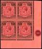 1921-32 £1 purple and black/red, lower right corner block of 4 with plate number ‘1’, fresh o.g., a rare and desirable positional piece. SG 80, cat £900+.