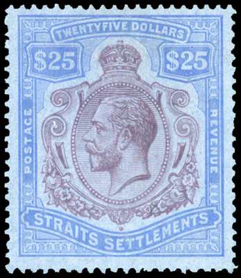 Straits Settlements 1912-23 $25 purple and blue
