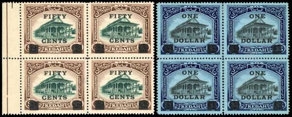 Kedah 1919 surcharges set of 2 in blocks of 4