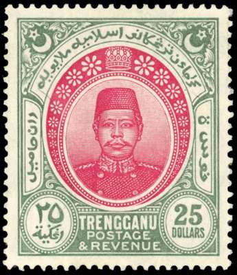 1910-19 $25 rose-carmine and green, fine large part o.g. SG 18, cat £1700