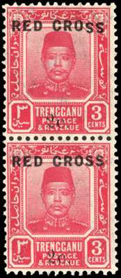 Trengganu 1917-18 Red Cross 3c+2c error SS in CROSS inverted
