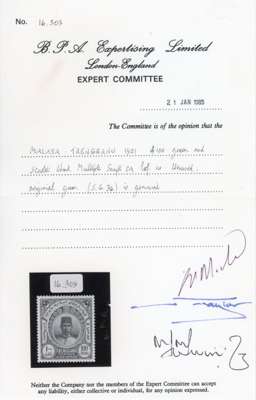 1921-41 $100 green and scarlet, fresh unmounted o.g. and rare thus. BPA cert (1985) as former SG 36. SG 47, cat £10000+