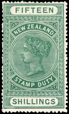 New Zealand 1913 postal fiscal 15s green perf 14