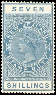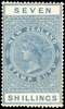 Postal Fiscal. 1913-21 7s pale blue, DLR chalk-surfaced paper, wmk 43 sideways, perf 14½x14, large part o.g., a very fine example of this scarce stamp. SG F117, cat £350.