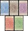 Postal Fiscal. 1913 2s to 5s, DLR chalk-surfaced paper, wmk 43 sideways, fresh unused (4s), large part o.g. (5s) or unmounted o.g., the 2s with surface blemish still a fine and scarce quintet, the 3s with a prominent frame break and showing significant plate damage to ‘R’ of ‘THREE’. SG F98/F102, cat £715+.