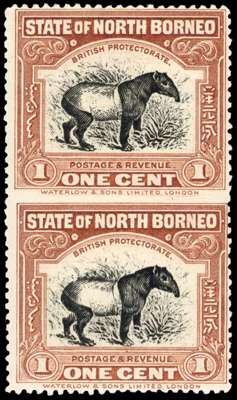 North Borneo 1909-23 1c brown vertical pair error imperf between