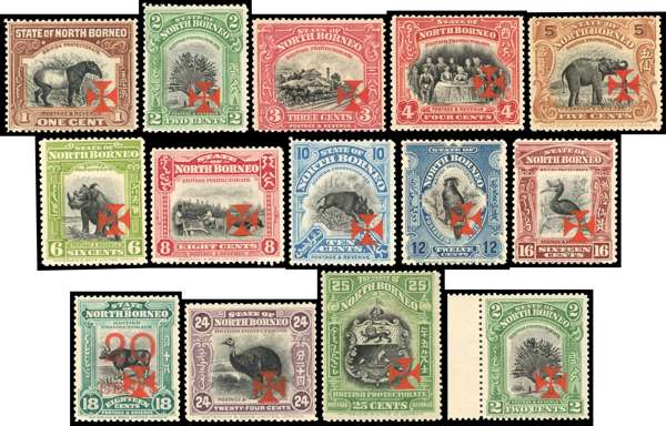 North Borneo 1916 Red Cross set of 13 vermilion cross
