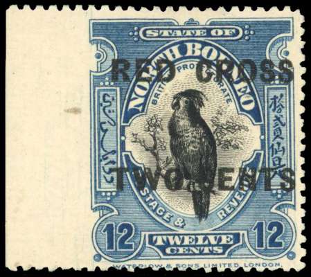 North Borneo 1918 Red Cross 12c+2c imperf between stamp and margin