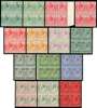1913-21 set of 10 to $5 plus additional 1c, 2c (2) and 25c, wmk MCA, blocks of 4, generally fine large part o.g. to unmounted o.g., attractive and rare multiples. SG 101/110, cat £1600+ (14)