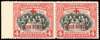 1918 (Oct) Red Cross 4c+4c scarlet, left marginal horizontal pair, error IMPERF BETWEEN STAMP AND MARGIN, fresh large part o.g., very scarce. SG 238 var.