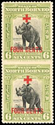 North Borneo 1918 Red Cross 6c+4c vertical pair error Imperf Between