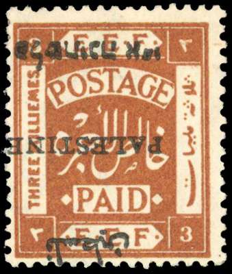 1920 (1 Sep) 3m chestnut, perf 15x14, type 4 opt, error OPT INVERTED (and offset on reverse), fine o.g., very scarce. SG 18a, cat £550