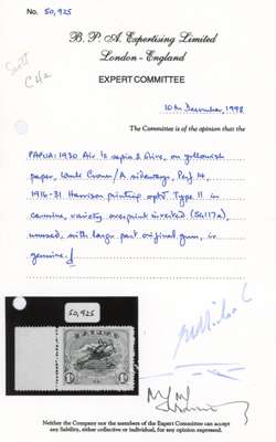 Papua 1930 Air 1s sepia and olive ERROR OVERPRINT INVERTED S.G. 117a