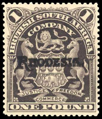 Rhodesia 1909-12 £1 grey-purple overprint in violet