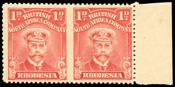 Rhodesia 1913-19 1d red horizontal pair error Imperf Between