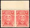 1913-19 1d rose-red, upper marginal horizontal pair, error Imperf between, fresh mint o.g., scarce. SG 195a, cat £1000