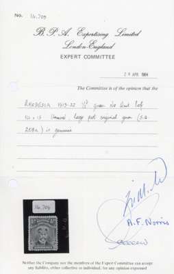 Rhodesia ½d dull blue-green Perf 14x15 fresh mint. S.G. 208a cat £8,000