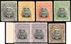 1913-19 2d to 2s, die I, perf 14, the ‘set’ of 6 (less 8d), fresh large part o.g. to o.g., the 3d and 6d (horizontal pair) with a few short perfs, still very attractive with lovely colours. SG 209/214, cat £842