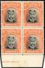 1913-19 4d black and orange-red, die I, perf 15, lower marginal block of 4 with part imprint, mint large part o.g., trivial perf toning mentioned for accuracy and minor marks in margin otherwise fine and fresh, a very scarce multiple. SG 216, cat £600+