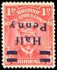 Rhodesia SG 280a 1917 ½d on 1d rose-carmine error Surcharge Inverted mint