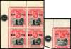 1912-16 range comprising basic set of 10 to 3s plus 1d black and scarlet, unlisted 3d on pale yellow paper and ½d lower left corner plate pair showing variety ‘Blot on scroll’ (this faintly toned), also 1916 War Tax 1d, 1919 War Tax 1d plate block of 4 and 1922 set of 3, cond varies but mostly fine o.g. SG 72/81, 88, 89/91, cat £445+