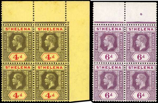 1912 4d, 6d, and 1913 4d, 6d, mint selection incl blocks of 4 ('POSTAGE POSTAGE' designs with plate number) and 1913 pair with Split ‘A’ variety, the 1912 blocks with tiny traces of toning otherwise fine part to large part o.g. SG 83/86, cat £1214+
