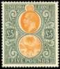 1912-21 £5 orange and green, wmk MCA, fine o.g. SG 130, cat £4500