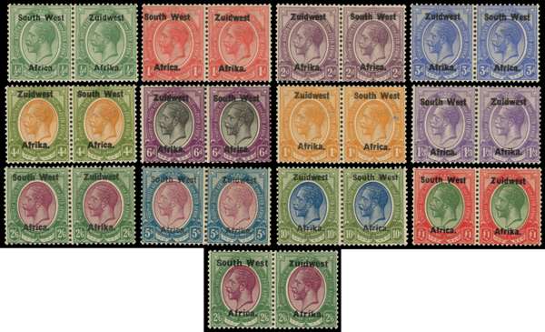 SWA South West Africa 1923-36 set of 12 horizontal pairs to £1, setting III S.G. 16/28 cat £850