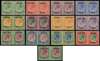 1923-36 set of 12 horizontal pairs to £1, setting III opt (14mm space without hyphen), large part o.g. £1 with unobtrusive diagonal crease not affecting ,fine appearance, offered with Setting IV 2s6d purple and green (S.G. 28), also large part o.g. S.G. 16/28 cat £850