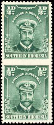 Southern Rhodesia 1924-29 ½d blue-green, vertical pair, error IMPERFORATE BETWEEN S.G. 1b, £1,200