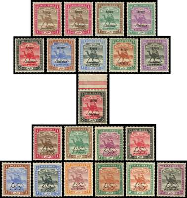 Official and Army Service. Selection on stock pages incl 1913-22 ‘SG’ perfin set of 9, 1922 ‘SG’ perfin set of 4, 1927-30 ‘SG’ perfin set of 7, 1906-11 ‘Army Service’ set of 9 to 10p (incl both types of 1m. 10p with 2007 BPA cert) plus 5m apparently showing opt treble, one diagonal (2006 Hass cert), and 1913-22 ‘AS’ perfin set of 10 to 10p (incl both 5p), cond varies but generally fine to very fine, large part o.g. to unmounted o.g., an excellent basis on which to expand. SG O11/O31, A5/A25, cat £4,000+