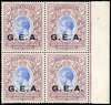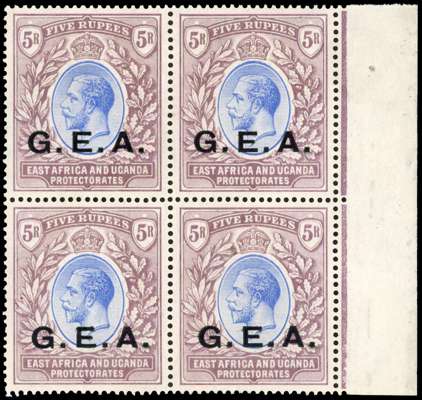 1921 ‘G.E.A.’ set of 6 to 5r, Script wmk, fresh large part o.g., also 5r block of 4, unmounted o.g., and 1922 1c and 10c. SG 63/73, cat £1143 (12)