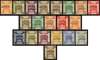 1920 (Nov) range comprising perf 15x14 set to 5p (less rare 1p) incl 1m with inv opt and 2p with type 1a opt (Brandon cert), perf 14 set of 11 to 20p incl 1m with inv opt, and perf 14 5p to 20p as marginal (5p) or corner blocks of 4, mainly fine large part o.g. to o.g. SG 1/19, cat £1700+ (42)